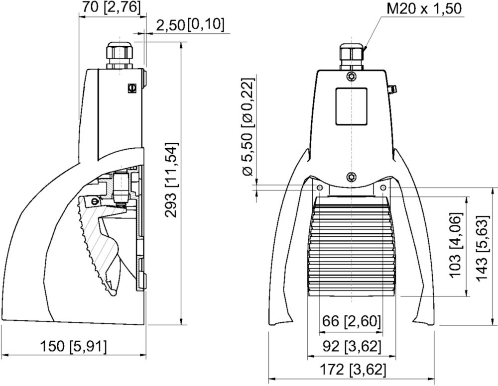 Ex GFSI,Foot switch,With protective collar,Pedal, Aluminium die-casting, painted, Corrosion-resistant aluminium, powder-coated IP66/IP67, 1 x M20 Ø 4 ... 13 mm, Black plastic, Zone 1/2/21/22