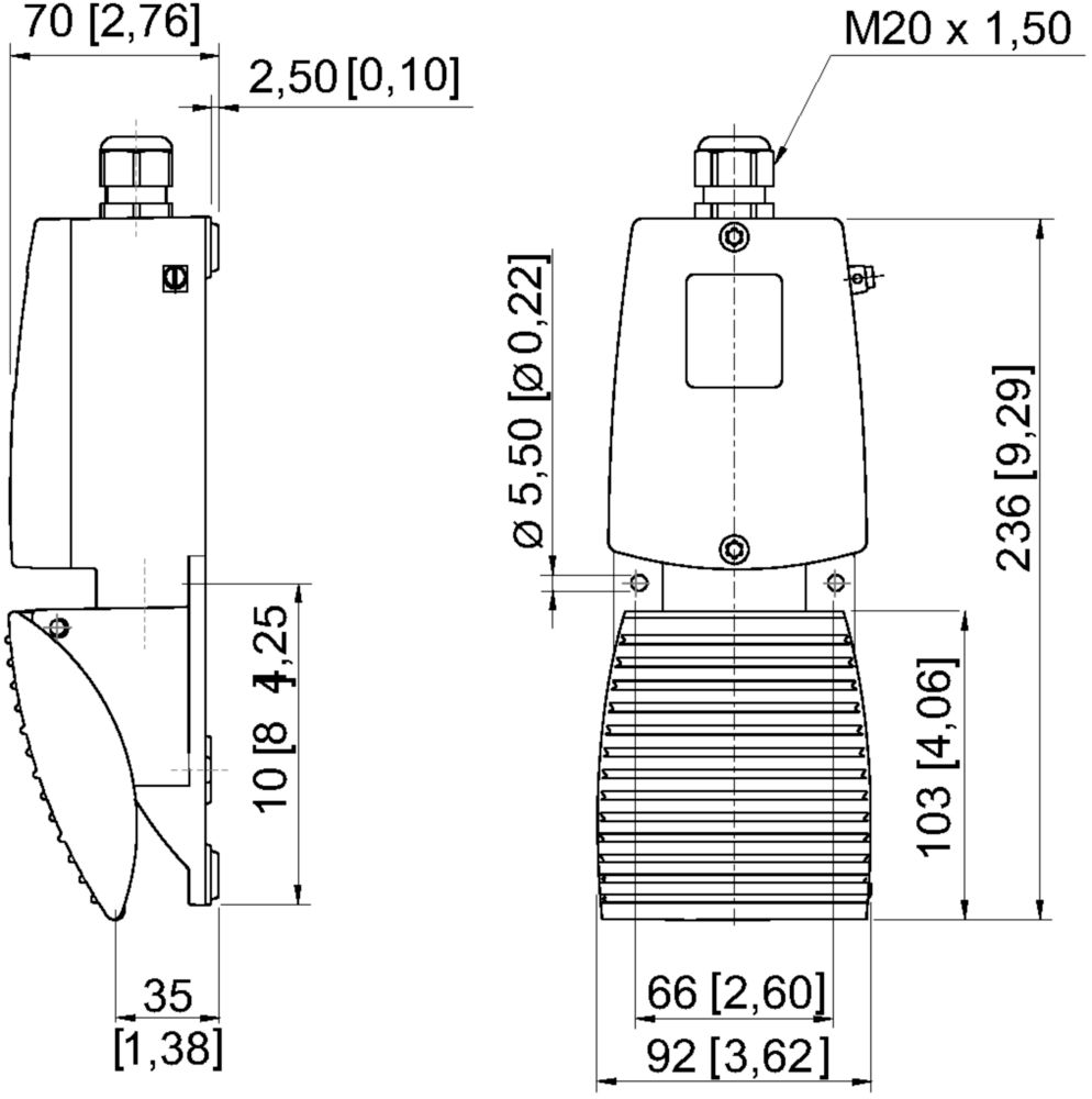 Ex GFI,Foot switch,Without protective collar,Pedal, Corrosion-resistant aluminium, powder-coated, IP66/IP67, 1 x M20 Ø 4 ... 13 mm, Black plastic, Zone 1/2/21/22