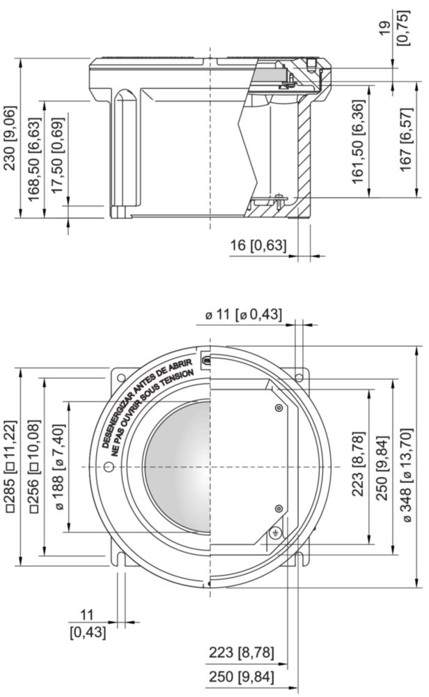 Empty enclosure, Aluminium, copper-free, Seawater-resistant, Enclosure size 5, Cover: With inspection window, Width: 285 mm, Height: 230 mm, Length: 285 mm, 18.750 kg, Zone 1/2/21/22