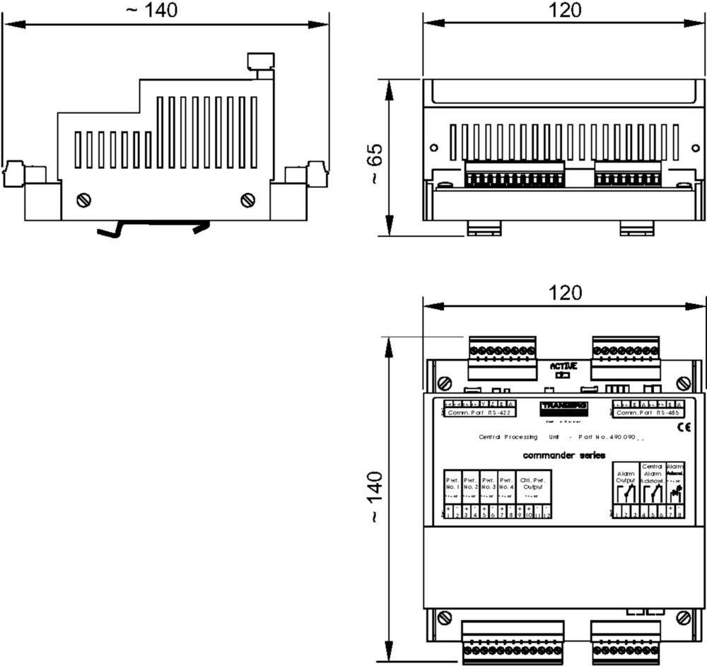 | Highlights | DIN rail mounting.Supplies control power to the modules in the commander system.Monitoring of up to 4 power supplies, 24VDC.Potential free general alarm output, 1C/O contact.Alarm silence digital input, 24VDC.Alarm mute output, 1C/O potential-free contact. Used to mute the alarm at an external alarm centre.Galvanic isolated communication port for alarm handling connection to Voyage Data Recorder (VDR) or SCADA interface.Built-in snubber network which allows termination of a wide range of communication cable, 100-250 Ohm characteristic impedance. End resistors shall not be used. |