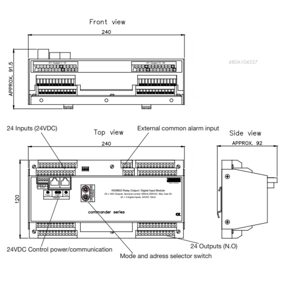 | Highlights | DIN rail mounting.24 individual potential free outputs, 1 N/O contacts.Built-in snubber network which allows termination of a wide range of communication cable, 100-250 Ohm characteristic impedance. End resistors shall not be used.Alarm input: 24VDC opto-isolated, 2 pcs.Alarm reset input: 24VDC opto-isolated. |