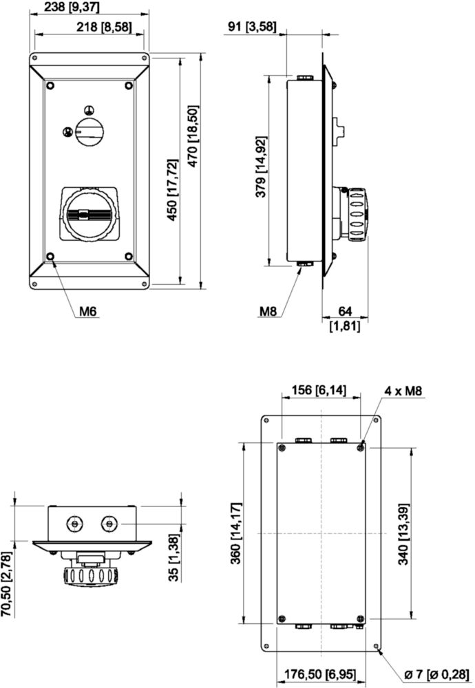 8150/5-V88-37122-3409, Wall-mntd socket distributor, 1 x 8570/18, 16 A, 200 ... 250 V, Blue, Number of poles on socket 1: 4, 4 x M25 x 1.5, Zone 1, 2, 21, 22