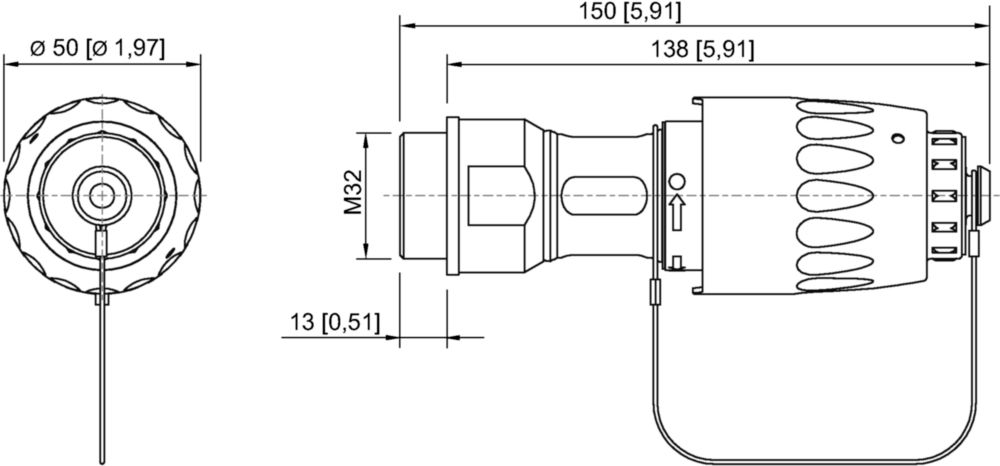 Ex e device plug 500 V, 16 A, 7 P + PE / 8 P Plug; M32 x 1.5, Stainless steel 1.4404 Zone 1, 2, 21, 22